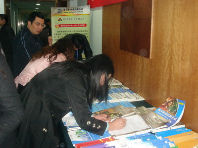 會(huì)議間隙,與會(huì)老師在我社展位前閱覽圖書,索取樣書,了解出版信息并在教材合作方面達(dá)成一些意向。